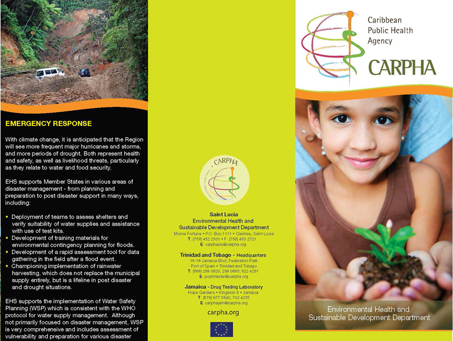 The Environmental Health and Sustainable Development (EHS) Department of the Caribbean Public Health Agency (CARPHA) supports the Caribbean’s sustainable development agenda by playing a lead role in key areas related to environmental management for optimal public health.